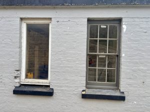 Following on from a successful grant application to Charles Burnett 111 we are now preparing four window openings for new windows. The “gaps” were temporarily filled with timber and plastic sheeting to keep the rain out, these have been removed to allow us to prepare the window bars for painting and carry out a few stone repairs. The estimated lead in time to have these bespoke windows made is 23 weeks, so hopefully they will be in, painted and weather tight before winter.