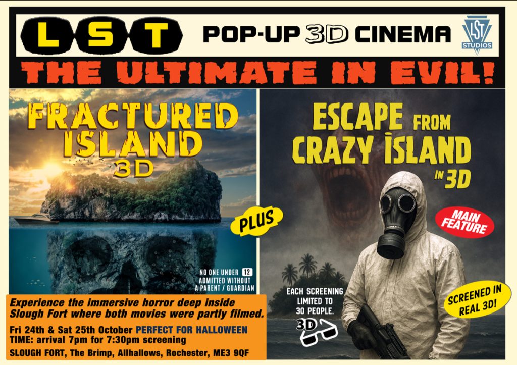 COMING SOON, DOUBLE BILL over the weekend of 24th and 25th October, tickets go live 7th October, watch this space and our facebook/Instagram page. Local producer, local actors and filmed locally including Slough Fort, ALL IN 3D